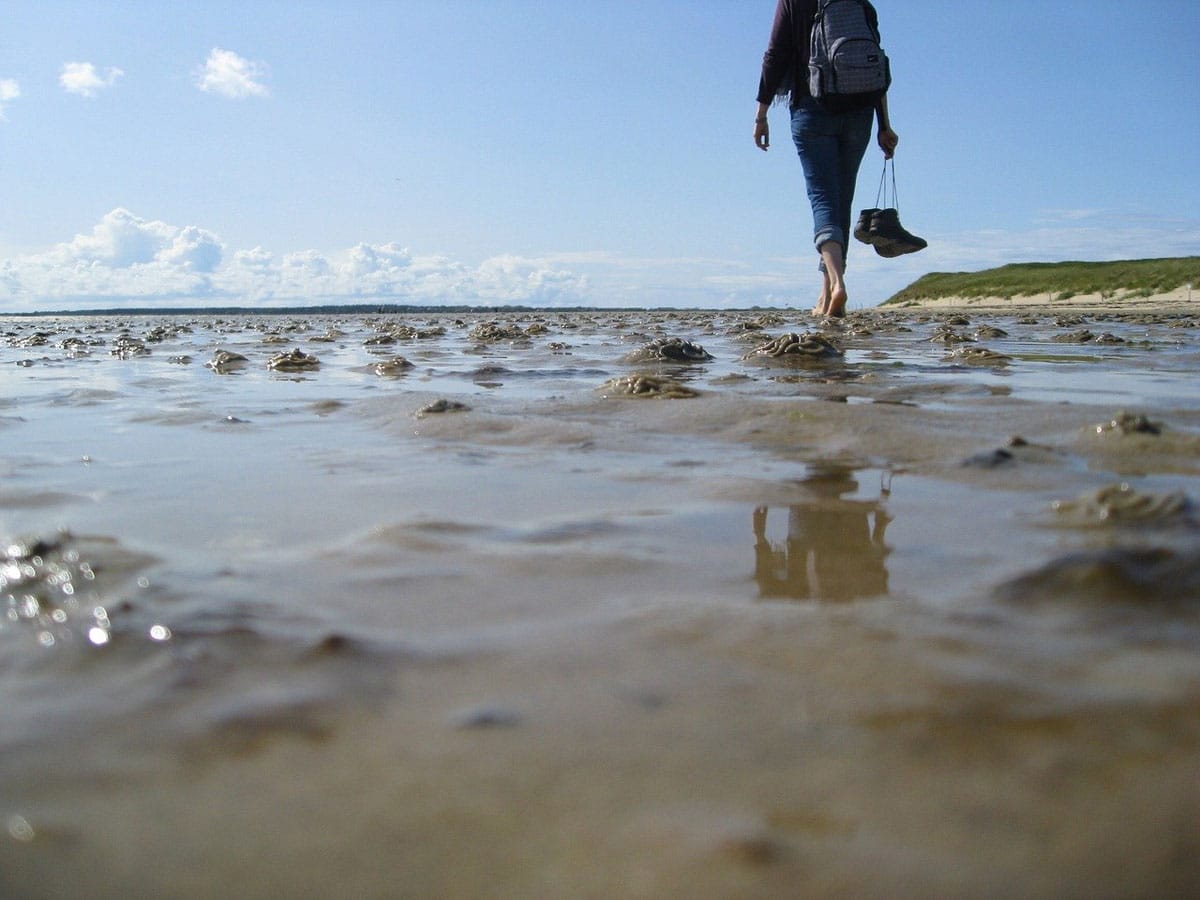Eigentlich gehört der Kniepsand nicht zu Amrum, er ist der gesamten Westküste der Insel vorgelagert und wandert vermutlich in den nächsten Jahrhunderten um die Amrumer Odde (Nordspitze Amrums) herum. Aktuell dient er als natürlicher Inselschutz bei Sturmfluten und orkanartigen Szenarien. Bei schönem Wetter aber dient er als wunderschöner weißer Strand der Insel, auf dem sich zahlreiche Badestrände für Urlauber befinden. Info: Der Name Kniepsand kommt vom Wort „kniep“ für „kneifen“. Auf Amrums Nachbarinsel Helgoland spricht man etwa von „Knieper“, den Zangen von Taschenkrebsen. Worin genau der Zusammenhang besteht, scheint ungeklärt.