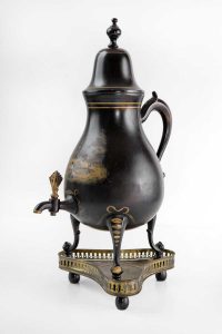 Heute gehört zur Bergischen Kaffeetafel: Der Kaffee aus der „Dröppelminna“ – das ist eine bauchige „Koffekann“ mit seitlichem Hahn. Ohne die geht es nicht, sie wird zuletzt präsentiert und von den Einheimischen liebevoll auch Königin der Kaffeetafel genannt. Doch bevor man zur Gekrönten kommt, hier die „Gesellen“, die charakteristisch für die Tafel sind: „Hefeblatz“, bergische Brotsorten, Milchreis mit Zucker und Zimt, Waffeln, Honig, Konfitüre, Zuckerrübensirup, Apfel- und Birnenkraut et cetera. Je nach Gusto wird die Tafel um herzhafte Komponenten wie Rührei, Käse und Wurst ergänzt. Und zum Abschluss der Kaffeerunde darf der bergische Korn nicht fehlen.