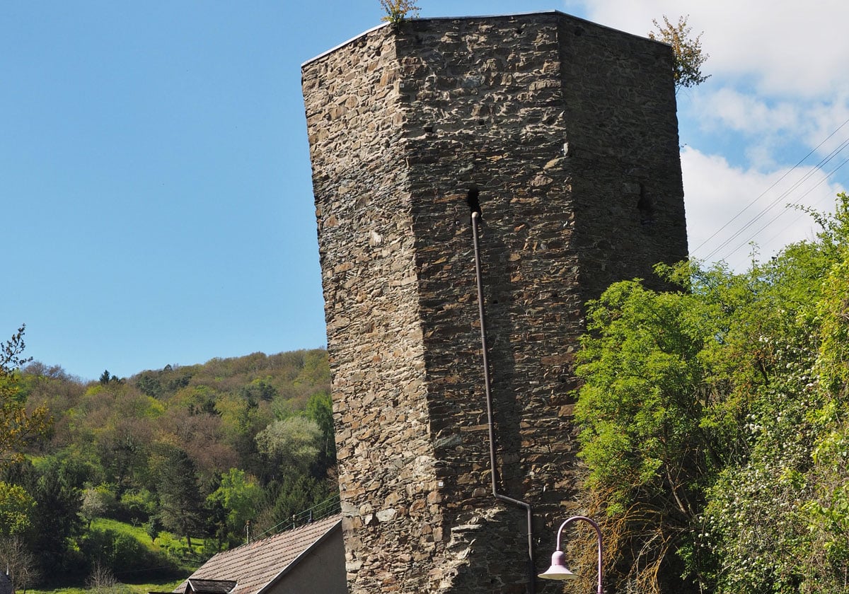 Der Schiefe Turm von Dausenau im Lahntal weist eine Neigung von 5,22 Grad auf. Da er eine Ruine ist, wird er im Guinessbuch der Rekorde „nur“ auf Platz zwei der schiefen Türme geführt. Pisa übertrifft er allemal hinsichtlich seines Neigungswinkels. Seine Grundlegung reicht bis ins Mittelalter zurück.