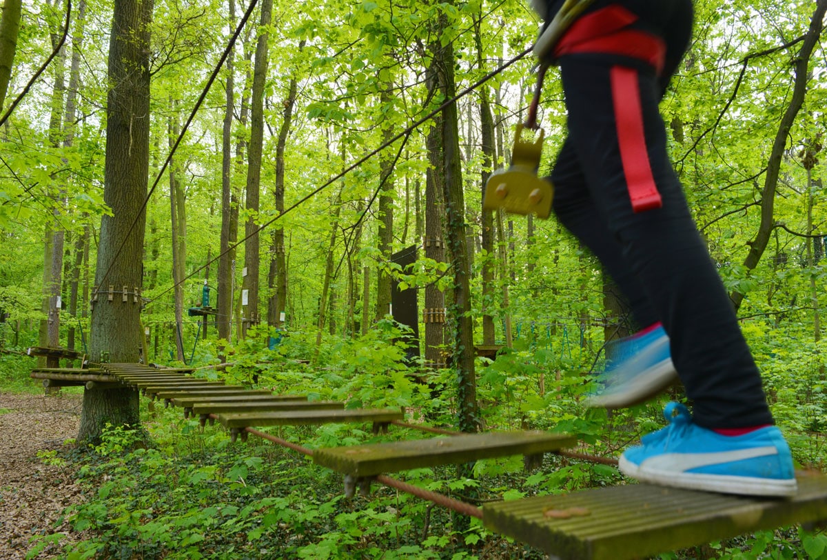 Wenn Sie sich im Wald wohlfühlen und weiter abenteuerlustig sind, können Sie außerdem mit der ganzen Familie die Kletterstationen zwischen den Bäumen (auf bis zu 15 Meter Höhe) in Angriff nehmen. Sie werden gut gesichert und vorab geschult.