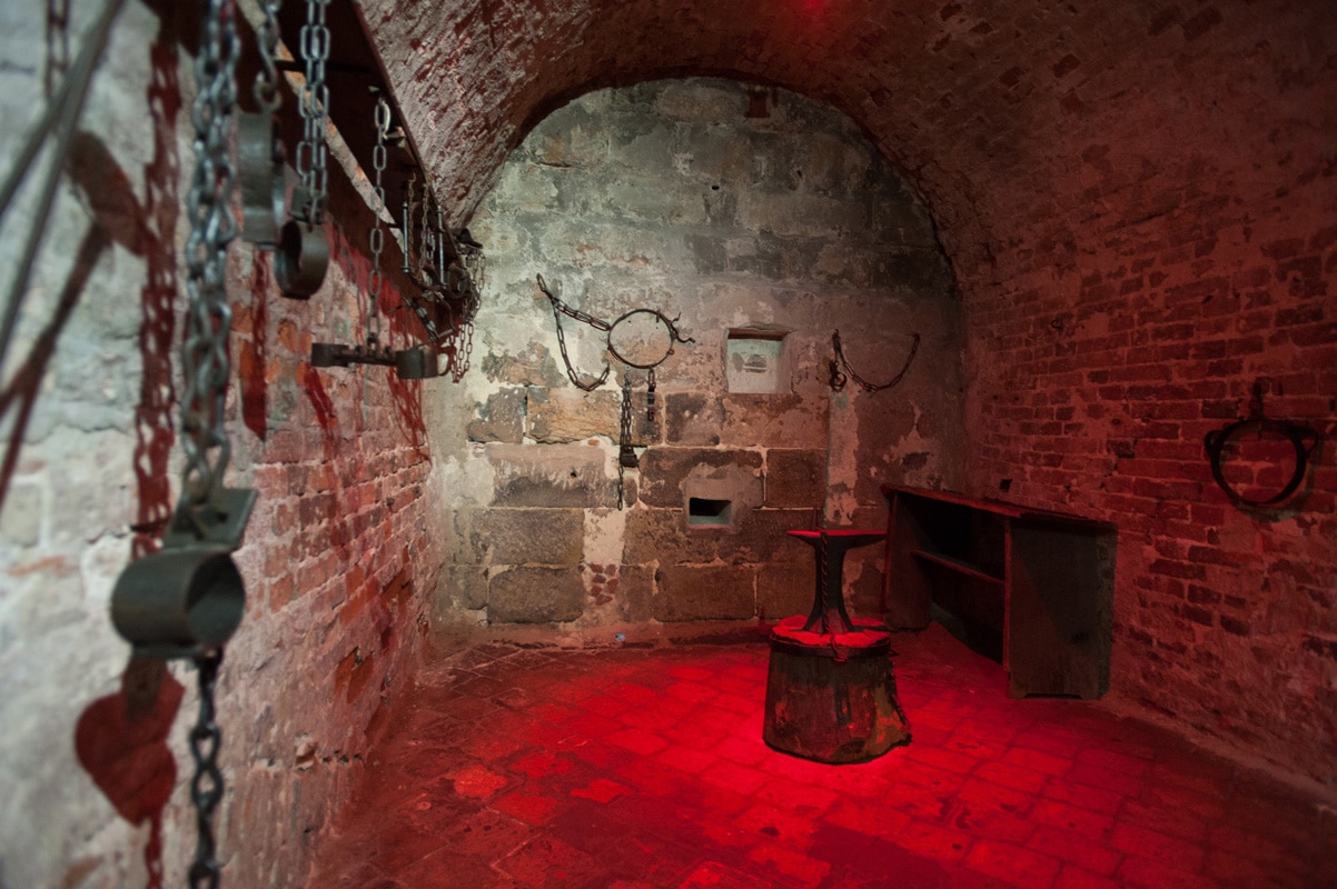 5. Mittelalterliche Lochgefängnisse: Noch einmal geht es hinab in den spannenden Nürnberger Untergrund: Die Lochgefängnisse im Kellergewölbe des Alten Rathauses dienten der Stadt Nürnberg im Mittelalter als Untersuchungsgefängnis. Zu sehen sind heute noch zwölf Zellen, in denen bei 2 Metern Länge, Breite und Höhe oftmals zwei Gefangene in völliger Dunkelheit angekettet waren. Neben den Gefängniszellen kann man die Folterkammer, das Henkerstübchen für die letzte Mahlzeit, die Schmiede zur Herstellung von Fesseln und die Gefängnisküche besichtigen.