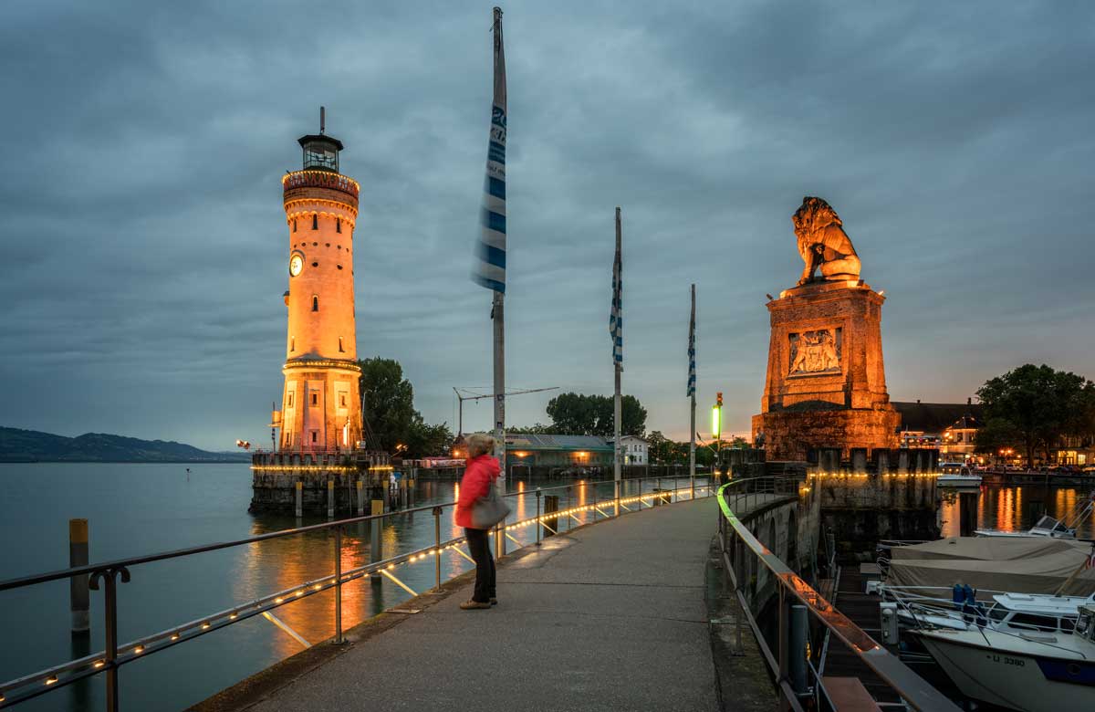 Lindau begeistert mit seiner einmaligen Lage mitten im Urlaubsparadies Bodensee: Die Altstadt liegt auf einer knapp 70 ha großen Insel und versprüht historisches Flair mit ihren jahrhundertealten Gebäuden, lebhaften Plätzen und malerischen Gassen. Bekannt ist die Stadt zudem für ihre Hafeneinfahrt mit bayerischem Löwen und weißem Leuchtturm sowie ihre Uferpromenade, die zu den schönsten am Bodensee zählt. Zahlreiche Cafés laden hier zum Verweilen ein und bieten herrliche Blicke auf das maritime Treiben im Hafen sowie das beeindruckende Alpen- und Bodenseepanorama. Wer ein Plätzchen zum Entspannen sucht, der ist auf dem Festland richtig: hier locken attraktive, geschichtsträchtige Parkanlagen wie der Lindenhofpark zum Spazierengehen.