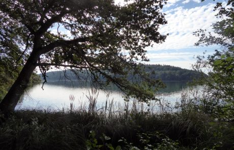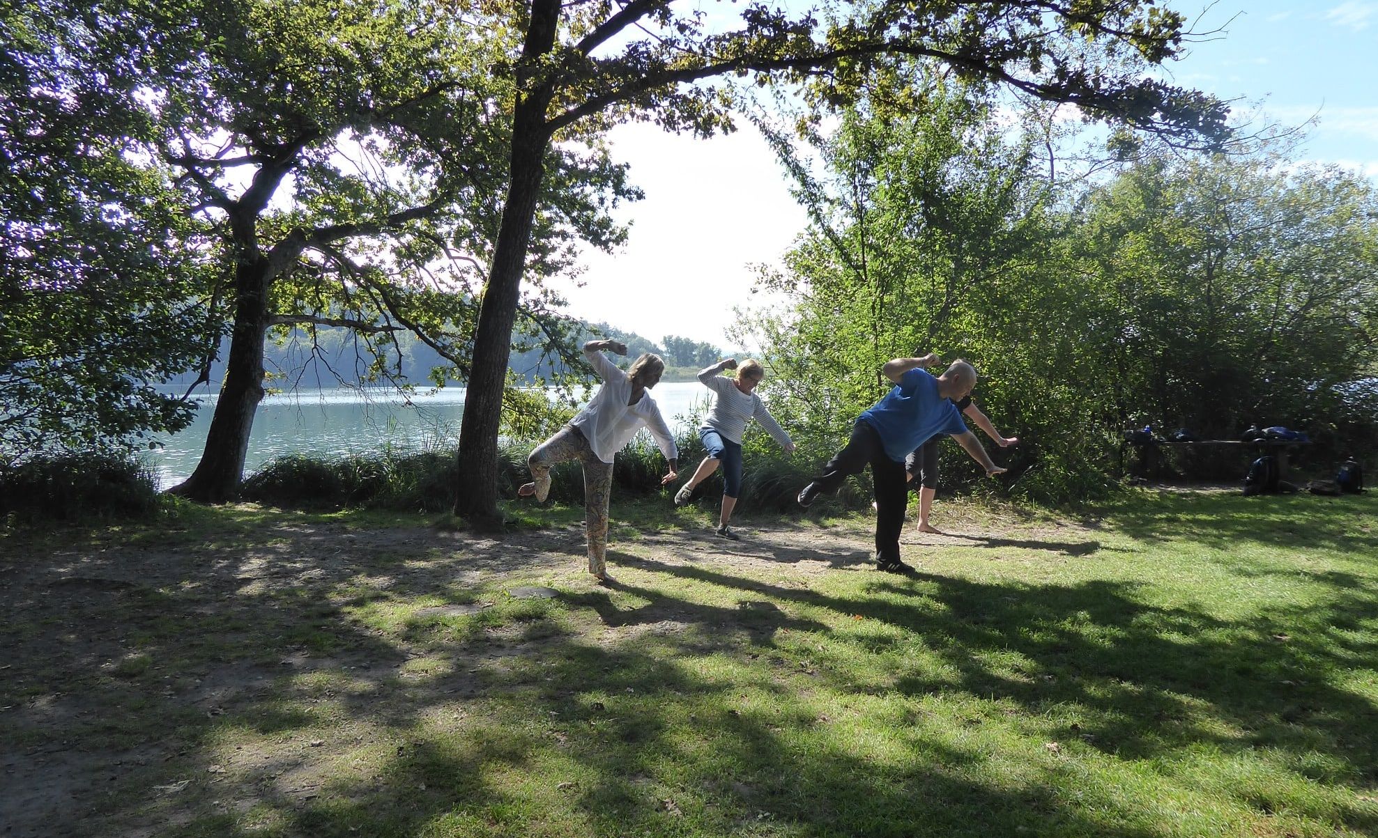 Aufmerksam und still geht es weiter bis zu einer kleinen Wiese am Seeufer. Es ist der einzige Zugang zu dem unter Naturschutz stehenden Gewässer. Ein Holzsteg führt auf den See, daneben ist ein schmaler, flach abfallender Einstieg ins Wasser. Mit Blick auf die ruhige Oberfläche des grünschimmernden Sees werden weitere Übungen erklärt und gemeinsam ausgeführt. Nach dem sanften Bewegungs- und Koordinationstraining fühlt man sich erfrischt und gelöst und mit der Natur verbunden.