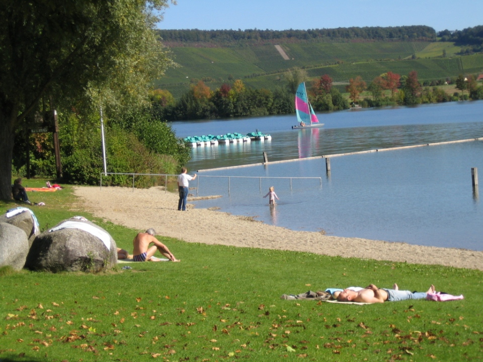 Am Gewässer selbst gibt es Anlagen für Segler und Surfer sowie den Campingplatz „Heilbronn“, der schon mehrmals mit Preisen ausgezeichnet wurde. Wem der Sinn eher nach Rudern oder Tretbootfahren steht, kann dies ebenfalls am See tun. Des Weiteren gibt es Bade- und Liegemöglichkeiten für Sonnenanbeter sowie ausgeschilderte Rad- und Wanderwege für alle Sportlichen und Fitgebliebenen. Dadurch, dass die Wasserqualität in den Sommermonaten regelmäßig vom Gesundheitsamt kontrolliert wird, ist ein unbeschwertes Baden möglich.