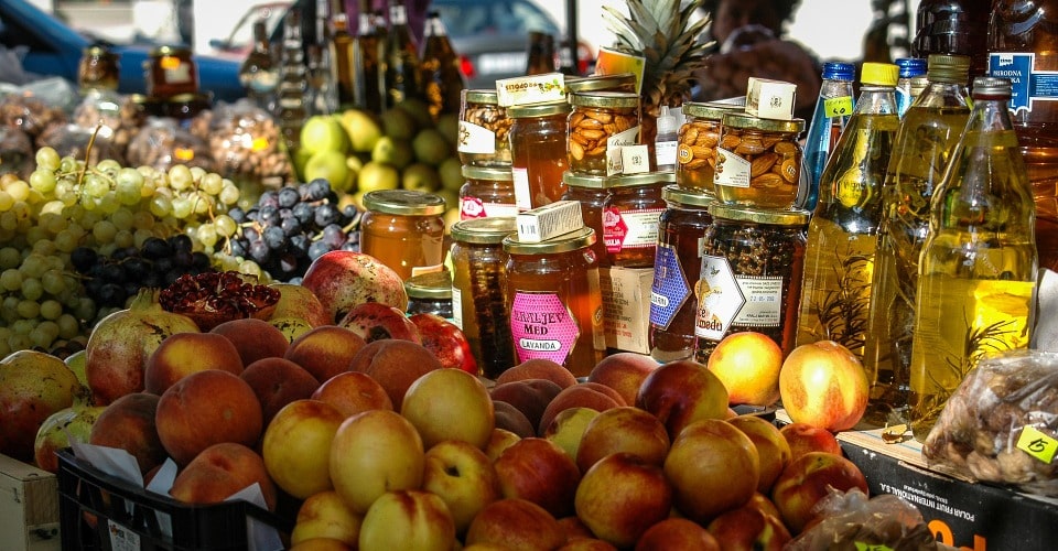 - Markstand mit Nektarinen und Honig: © pixabay.com