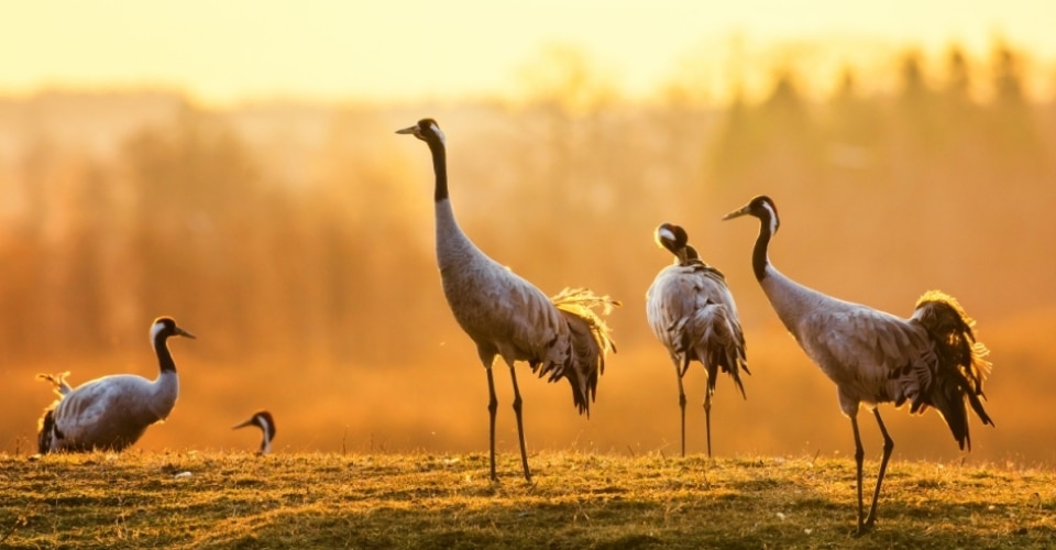 - Kraniche in der Morgensonne: © stefanholm - fotolia.com
