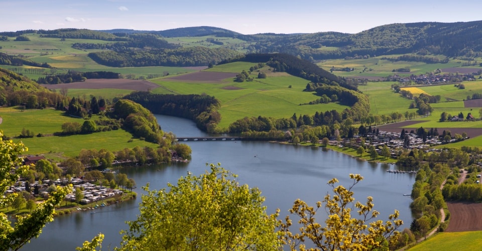 Der Diemelsee liegt mitten in einem Naturpark, ist 166 ha groß und wurde – wie so viele Gewässer – künstlich angelegt, um Hochwasser zu vermeiden. Direkt am See befindet sich die Gemeinde Heringhausen; die Gründung des Ortes geht noch auf Karl den Großen zurück. Eine Sehenswürdigkeit dort ist die romanische Kleinbasilika St. Barbara aus dem 12. Jahrhundert. Ein schönes Ausflugsziel bietet auch der 708 Meter hohe Osterkopf: der Berg verfügt noch über eine beeindruckende Heidelandschaft mit Zwergsträuchern, die unter Naturschutz steht. Wenn Sie etwas Glück haben, werden Sie dort vielleicht auch einen Mäusebussard oder Habicht erblicken.