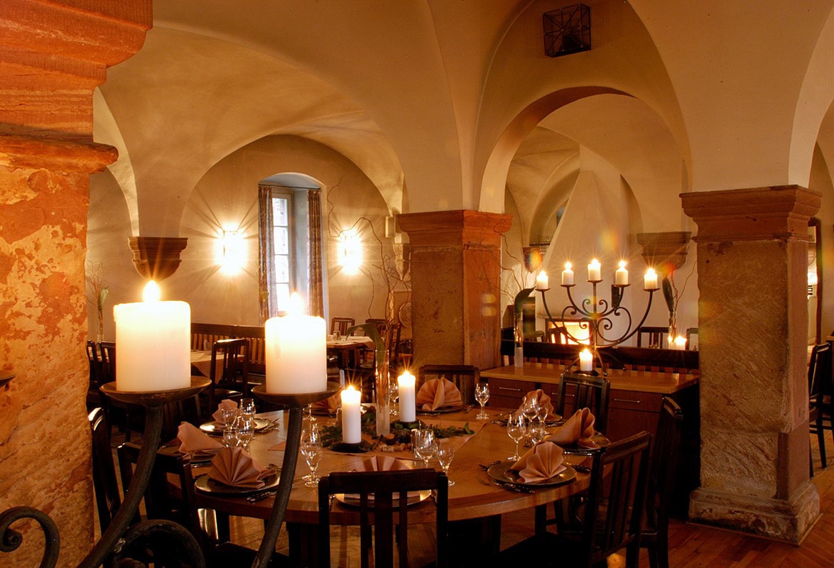 Die Klosterschänke im berühmten Kloster Eberbach in Eltville ist im ehemaligen Refektorium untergebracht. Wie einst die Zisterziensermönche, die hier lebten und arbeiteten, nutzt die Klosterküche von heute saisonale und regionale Produkten – einfach, frisch und ehrlich. Die Gerichte auf der Speisekarte bilden eine Melange aus Tradition und einer innovativen, zeitgemäßen Form der Zubereitung – z.B. „Felchenfilet | Bunter Mangold | Bandnudeln | Zitronenthymian“. Für Gesellschaften steht der offene, frisch renovierte Heuboden über dem Gastraum der Schänke zur Verfügung.