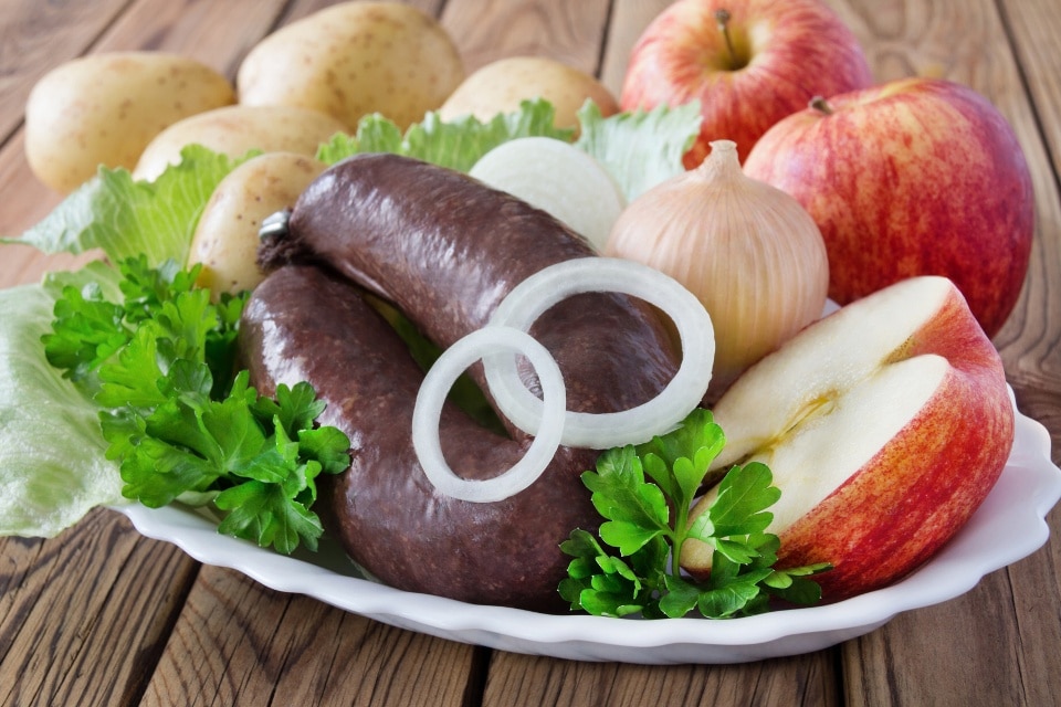 Eine weitere rheinische Spezialität mit einem recht eigenwilligen Namen ist „Himmel un Ääd“ – übersetzt „Himmel und Erde“, ein traditionelles Gericht aus Kartoffelpüree und Apfelmus, das häufig zusammen mit gebratener Blutwurst und gerösteten Zwiebeln serviert wird. Der Name lässt sich diesmal leicht erklären: „Erde“ steht für die Kartoffeln, die früher in der Region noch „Erdapfel“ genannt wurden, und „Himmel“ bezeichnet die Äpfel an den Bäumen.