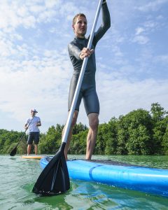 Wollen Sie mehr Bewegung, dann bietet sich eher das Stehpaddeln an. Aufrecht stehend bewegt man sich mithilfe eines Paddels auf einem großen Surfbrett fort. Das Stehpaddeln geht auf die polynesischen Fischer zurück, die so auf dem Meer „surften“. Im Moment erfährt die Sportart auch in Europas Seen- und Flusslandschaften einen Boom und findet zunehmend Verbreitung. Wer es lieber sitzend mag, der leiht sich ein Kanu oder ein Kajak. Bei einem Kajak sitzt man alleine im Boot und bewegt sich mit einem Doppelpaddel vorwärts – das Kajak ist sowohl für Anfänger (Kajak für Freizeitfahrten) und auch für Fortgeschrittene (Wildwasserkajak) einsetzbar. Das offene Kanu beziehungsweise der Canadier eignet sich besonders für Wanderfahrten mit mehreren Personen und Familien (auch mit Gepäck). Genießen Sie die Elbfahrt sitzend, stehend, chillend und/oder paddelnd. Mit Sicherheit erleben Sie eine der schönsten und artenreichsten Landschaften vom Wasser aus.