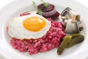 Wer jetzt erst einmal genug von Fisch und Meerestieren hat, dem sei die traditionelle Eintopfküche der Nordseeküste ans Herz gelegt. Einige Berühmtheit hat hier sicherlich der Labskaus erlangt – ursprünglich ein Eintopfgericht, das aus den Kombüsen der damaligen Segelschiffe stammt, da sich alle Zutaten (Pökelfleisch, Kartoffeln, Hering, Gewürzgurken und rote Bete) lange hielten und so ohne Probleme an Bord zubereitet werden konnten. Der Name stammt übrigens von dem englischen lobscouse und bedeutet „Eine Speise für harte Männer“.