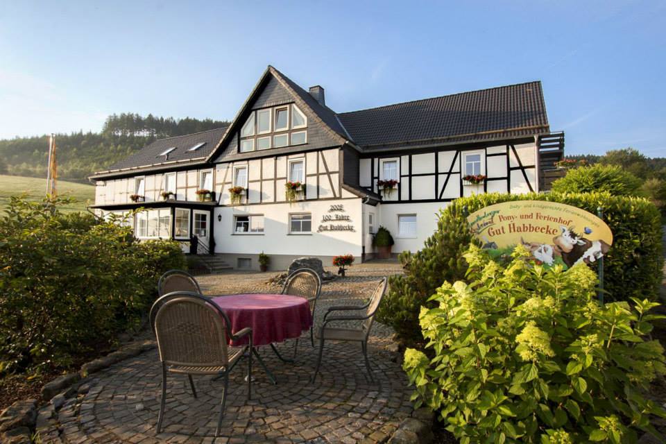 Der Pony- und Ferienhof Gut Habbecke besteht seit 1908 und befindet sich in Einzellage am Wald, ca. 1 km vom Ort Wenholthausen entfernt. Kinder stehen hier an erster Stelle – ob bei Reitstunden, Ausritten und Ponywanderungen, beim Toben auf dem Spielplatz, beim Kühe melken, beim Mini-Schweinchen füttern oder beim Pferde putzen, füttern und misten. Die Eltern können währenddessen den Panoramablick in das feld- und wiesenreiche Wennetal mitsamt seinen idyllischen Fachwerkhäusern genießen. An heißen Tagen sorgt ein Swimmingpool mit Liegewiese für Abkühlung.
