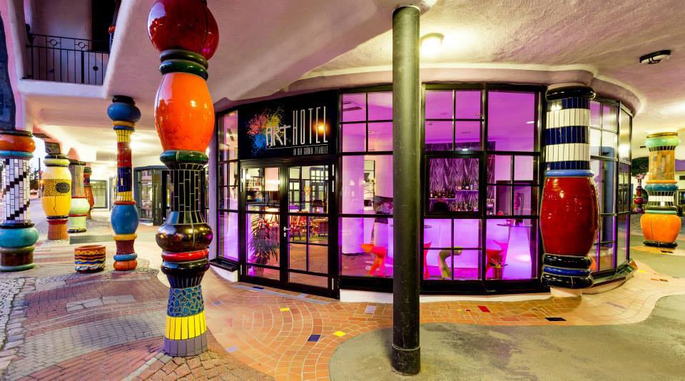 Seit 2013 empfängt das artHOTEL in der Grünen Zitadelle in Magdeburg seine Besucher in dem außergewöhnlichen Ambiente eines Gebäudes von Friedensreich Hundertwasser. Hier paart sich Gemütlichkeit mit moderner Atmosphäre und geschmackvoller Design-Einrichtung. Das zeitlose Interieur zieht sich durch alle Bereich des Hauses – von der Lobby mit Patchwork-Möbeln auf grünem Rasen bis hin zu den persönlich von Hundertwasser geplanten Badezimmern mit bunten Fliesen – ganz im Stil des Künstlers.
