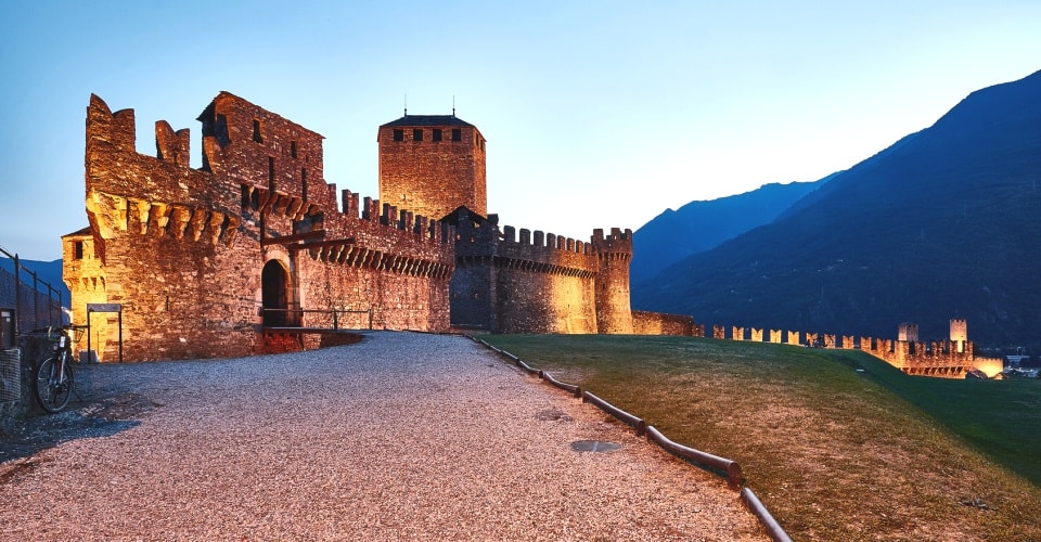 Bellinzona liegt etwa 20 Autominuten östlich des Lago Maggiore auf der nord-südlichen Verkehrsachse über das Gotthardmassiv. Die strategisch schon damals extrem günstige Lage nutzten die Mailänder Herzöge im 15. Jahrhundert zur Errichtung eines Bollwerks gegen die Schweizer Eidgenossen – so entstanden die drei Burgen von Bellinzona, Castelgrande, Castello di Montebello und Castello di Sasso Corbaro, die man heute noch in ihrer ursprünglichen Gestalt bewundern kann. Seit dem Jahr 2000 zählt die einzigartige Anlage zusammen mit den Mauerresten der Murata zum UNESCO-Weltkulturerbe. Bei einem Besuch der berühmten Festung erleben Sie ein Stück mittelalterliche Geschichte – Traumausblicke inklusive.
