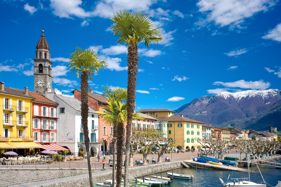 Am Nordufer des Lago Maggiore liegt Locarno, der wärmste Ort der Schweiz. Über der Stadt thront die Kirche Madonna del Sasso, welche auf eine Muttergotteserscheinung im Jahr 1480 zurückgeht. Die berühmte Wallfahrtskirche und Basilica minor glänzt mit eindrucksvoller Ausstattung, darunter kunstvollen Fresken und der Holzskulptur der im 15. Jahrhundert geschaffenen Madonna am Hauptaltar. Der beliebte Treffpunkt Locarnos ist die weite Piazza Grande mit ihren gemütlichen Restaurants und Cafés. Hier finden regelmäßig Konzerte statt und jährlich im August das bedeutende Internationale Filmfestival. Von Locarno in Richtung Norden erstreckt sich das naturreiche Maggiatal, welches für seine Grotti bekannt ist, in denen Sie Tessiner Spezialitäten genießen können. Ein großes Netz an Wanderwegen erstreckt sich bis auf 3.000 Meter Höhe, Naturbecken mit Wasserfällen laden zu einem erfrischenden Bad ein. Im Tal und an den Berghängen lässt sich trefflich mit Hunden wandern. Kleine, aber feine Skigebiete und romantische Schneeschuhpfade locken im Winter.