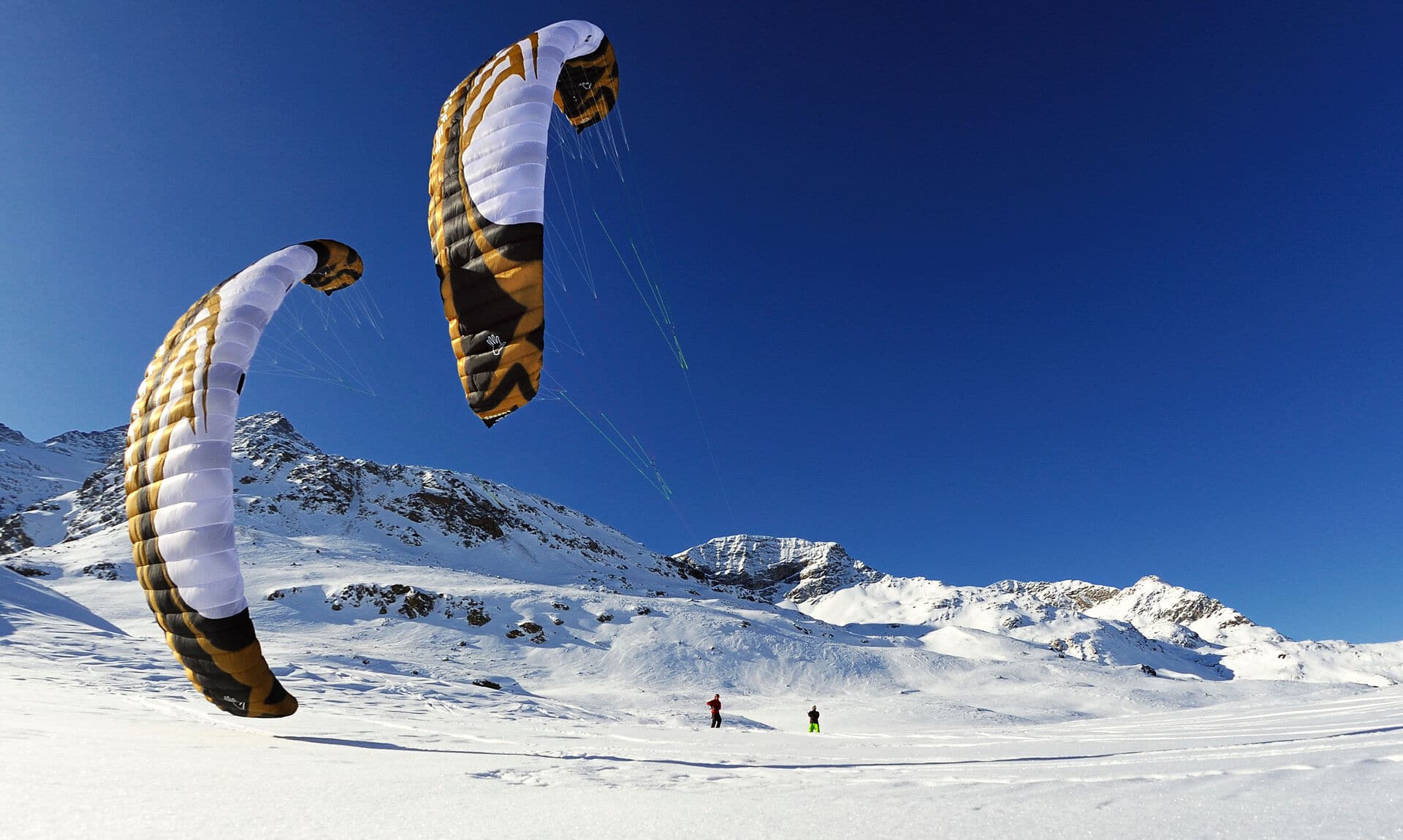 Man lässt sich als Snowkiter mit Hilfe des Windes von einem großen Lenkdrachen (Kite) über die verschneiten Wiesen oder Hänge ziehen. Es ist eine coole Art, sich so im Schnee fortzubewegen. Aber es geht nicht immer nur um das Gleiten und die Fortbewegung, denn mit einem Kite lassen sich auch atemberaubende Sprünge ermöglichen.