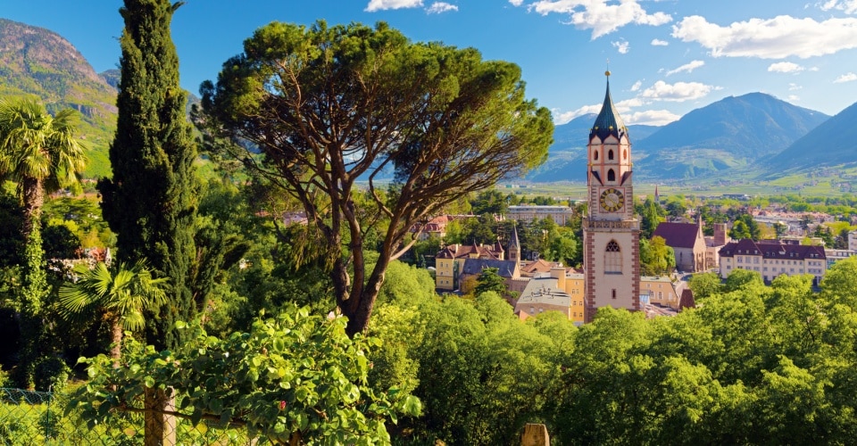 Kaum verlässt man die berühmten Lauben in Meran oder Bozen, jene überdachten Einkaufstraßen mit edlen Boutiquen und Geschäften, befindet man sich mitten in der Natur. In Meran locken Sommer- und Winterpromenade am wild rauschenden Fluss Passer; in Bozen ist es hingegen die Wassermauer, die Richtung Burg Runkelstein mit ihren mittelalterlichen Fresken führt. Auf dem Weg blicken Sie direkt auf eines der Highlights des UNESCO-Weltnaturerbes Dolomiten, den Rosengarten. Auf Schloss Sigmundskron oberhalb der Etsch hat Extrembergsteiger Reinhold Messner eines seiner inzwischen sechs Messner Mountain Museums eingerichtet. Während Sie auf Schloss Trauttmansdorff durch verschiedene Themengärten wandeln, die zu den schönsten Italiens zählen, nimmt Sie Reinhold Messner mit auf eine eindrucksvolle Reise durch die Welt des Bergsteigens und der Bergvölker. Falls Sie selbst hoch hinaus wollen, so könnte der Meraner Höhenweg die ideale Herausforderung sein. Der Wanderweg durch den Naturpark Texelgruppe führt an einigen imposanten Dreitausendern vorbei.