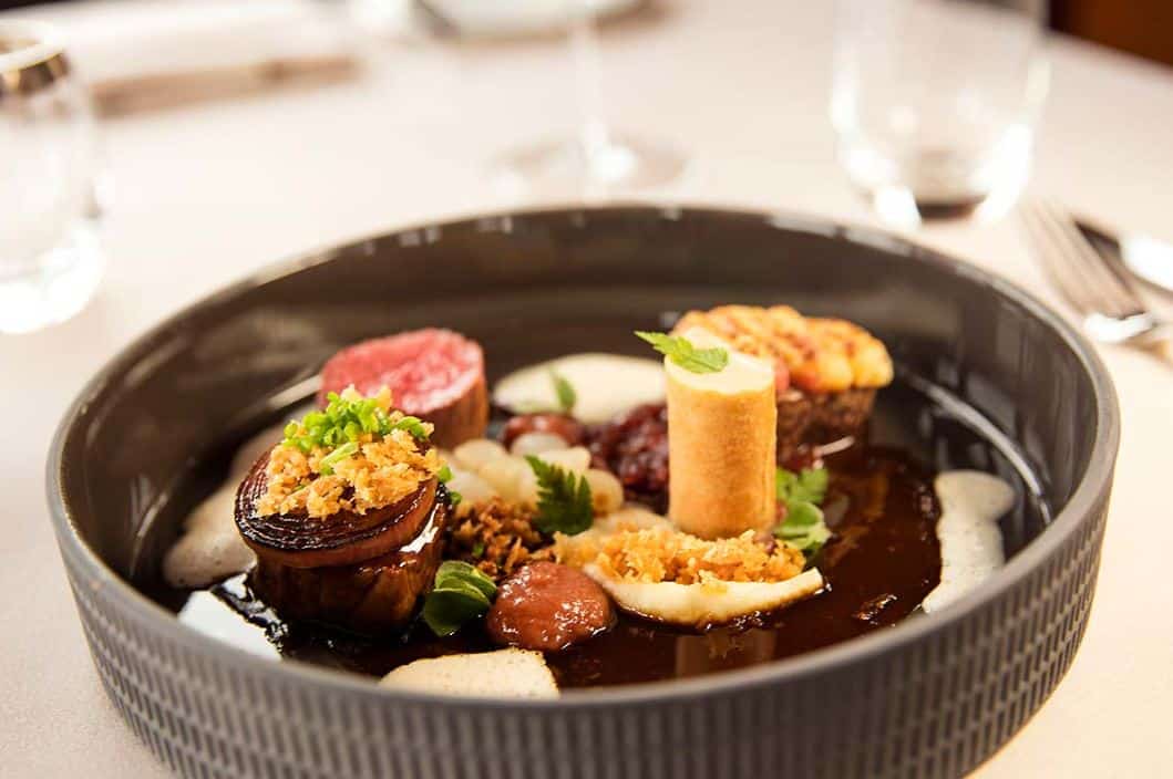 Gourmet Restaurant Friedrich Franz, Bad Doberan: Edle Seidentapeten, Stilmöbel, gehobene Tischkultur und ein grandioser Ostseeblick – beste Voraussetzungen für die kulinarischen Glanzleistungen von Ronny Siewert.