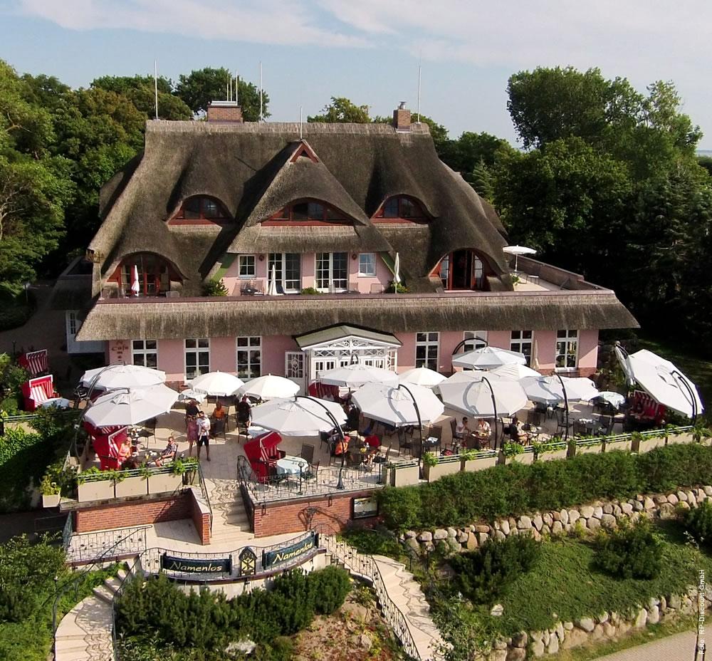 Restaurant im Romantik Hotel Namenlos & Fischerwiege, Ostseebad Ahrenshoop: Hier wird überwiegend regional gekocht. Unbedingt probieren sollte man die Kuchen und Torten aus der hauseigenen Konditorei. Tolle Seeterrasse.