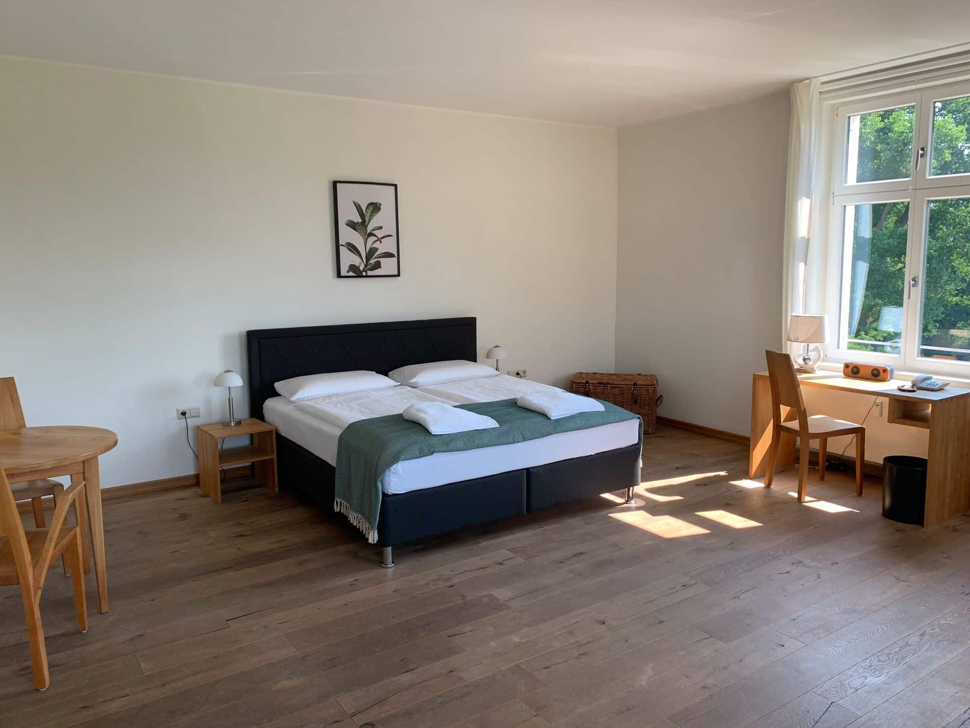 Mit Deiner Begleitung übernachtest Du in einem eco room in der Historischen Burgschule. Das Zimmer ist mit einem Holzfußboden und ökologischen Holzmöbeln ausgestattet. Im Zimmer findest Du Deine eigene Bluetooth Box und Yogamatte. Im Preis inbegriffen ist das Frühstücksbuffet, Parken, Sauna, WLAN sowie Aktivitäten wie Yoga, Meditationen, etc.