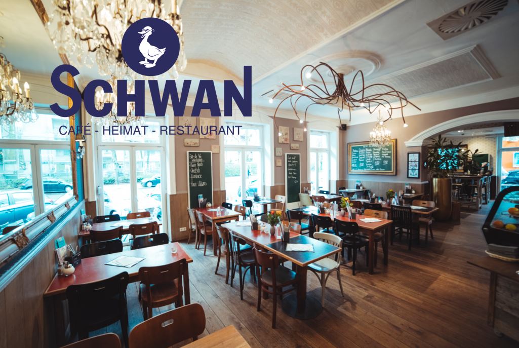 Ob gemütliches Frühstück, Lunch oder entspanntes Abendessen – der Schwan begeistert zu jeder Tageszeit Jung und Alt. Serviert wird eine frische Deutsche Küche mit dem gewissen Etwas: Gut bürgerlich, aber modern interpretiert! So locken auf der Speisekarte leckere Traditionsgerichte wie „Hausgemachtes Hühnerfrikassee“, „Rindergulasch mit Kartoffelstampf und Apfelkompott“ oder „Berliner Currywurst mit legendärer Currysauce und Pommes“.