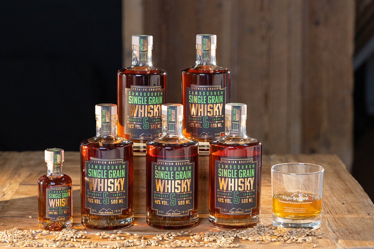 Der römische Name der Stadt Kempten im Allgäu, Cambodunum, verleiht dem fünfjährigen Single Grain Whisky seinen Namen. Fünf Jahre im Eichenfass, anschließende Lagerung im Portweinfass und ein besonders schonendes Destillationsverfahren sind das Rezept für den geschmacklich interessanten Single Grain Whisky aus der Allgäu-Brennerei.