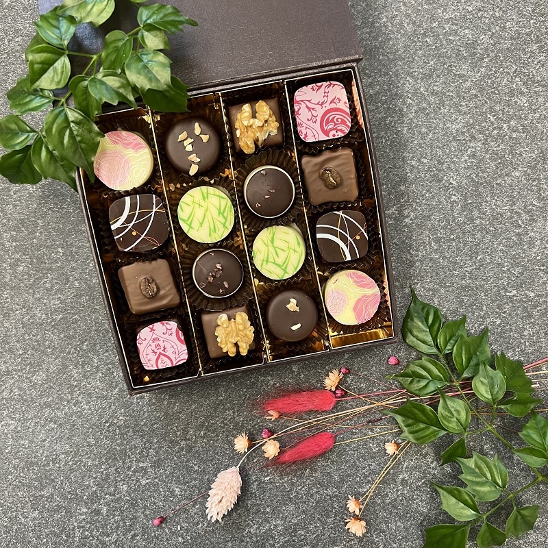 Diese stilvolle Schmuckschatulle ist eine reichhaltige Schatzkiste schokoladiger Überraschungen: 16 der feinsten Pralinen aus unserer Sächsischen Schokoladenmanufaktur legen Zeugnis ab von wahrer Leidenschaft – auf der handwerklichen Seite ebenso wie auf der Genussebene.