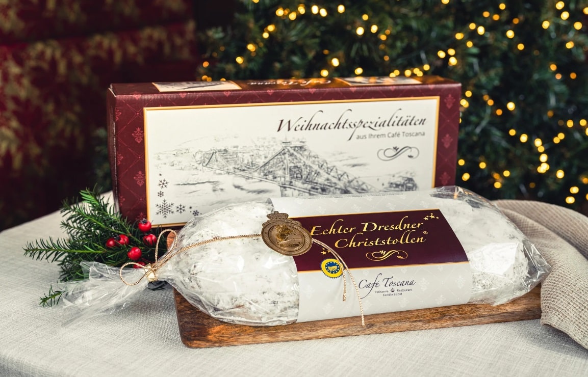 Der Dresdner Christstollen® – auch Rosinenstollen genannt – ist ein Klassiker: Mit seiner saftigen Krume, aromatischen Trockenfrüchten und Mandeln sowie dem Überzug aus weißem Puderzucker krönt er jede weihnachtliche Tafel. Wir verlosen heute: