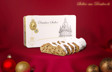 1x Dresdner Stollen® (1000 g) in der Geschenkdose „Edition Frauenkirche“ aus dem Online-Shop Stollen-aus-Dresden.de
