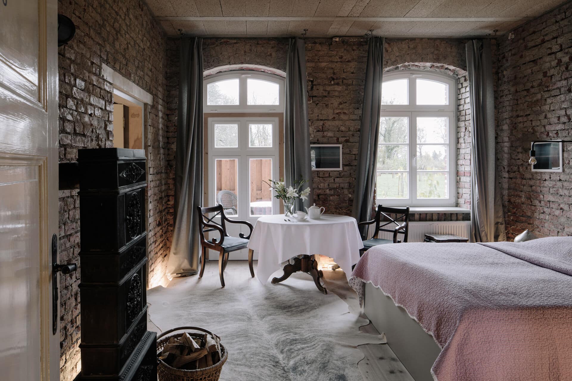 Der Gutshof Hessenburg ist eingebettet in die Felder Nordvorpommerns, die vielen hundert Kranichen im Frühling und im Herbst als Rastplatz auf ihren Flügen von Schweden nach Spanien dienen. Insgesamt beherbergt das Gutshaus 8 Apartments unterschiedlicher Größe, die individuell und kunstvoll von Alex Schweder, einem international tätigen Künstler, gestaltet wurden. Im Dachgeschoss befinden sich zwei Künstler-Studios, die jeweils mit einer kleinen Küche ausgestattet sind. Das Besondere sind die Spuren der Geschichte des Hauses – unverputzte Wände, geseifte Dielen, schwere Gutshausmöbel –, die im Gegensatz stehen zu den modernen Annehmlichkeiten des Hauses wie zeitgemäße Betten, Zentralheizung und WLAN. Perfekt zum Entspannen ist auch der knapp fünf Hektar große neobarocke Park mit Bänken und Sitzgruppen, an denen man auch frühstücken kann.
