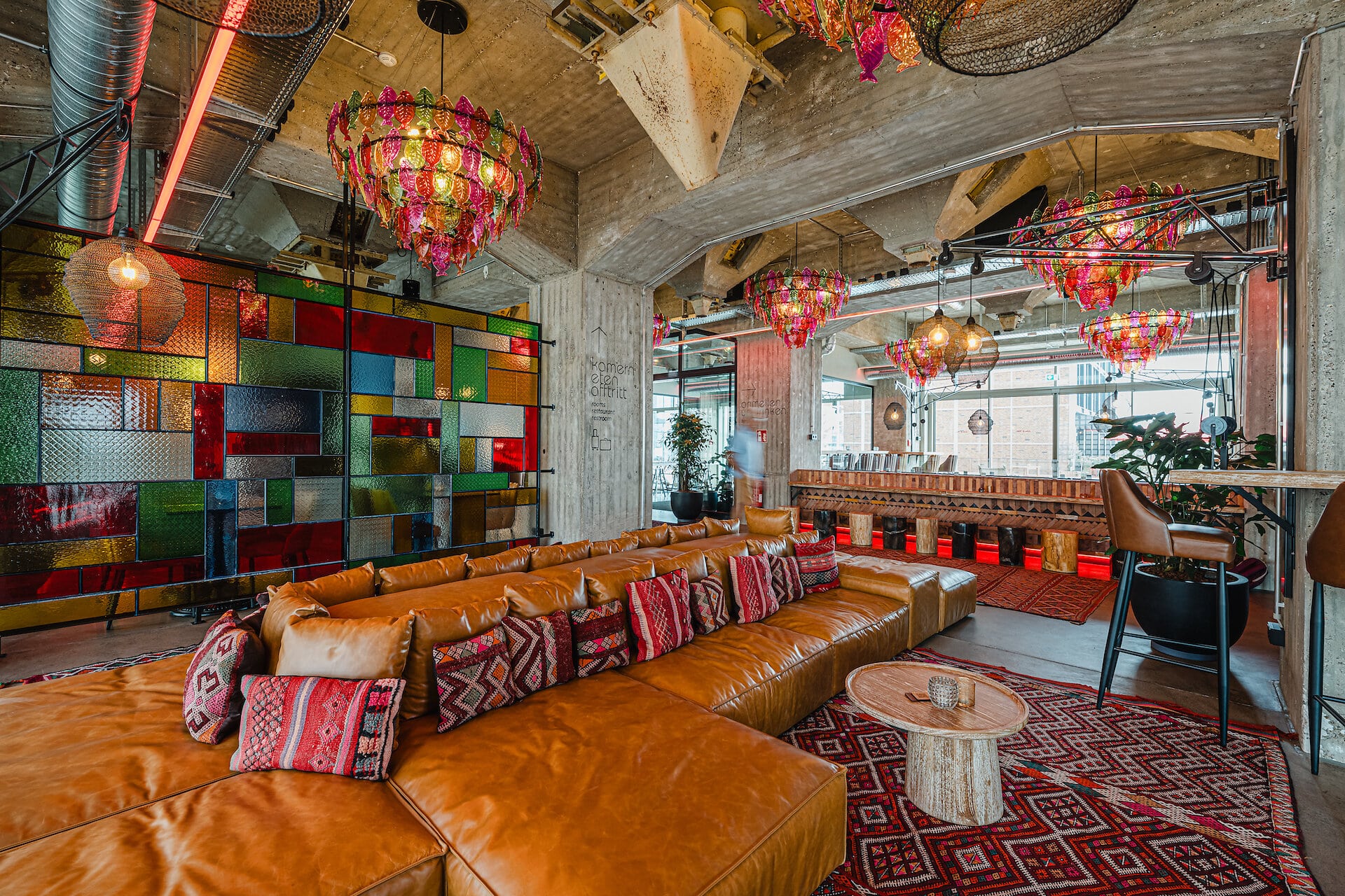 Auch das Einchecken im John & Will Hotel ist nicht ganz alltäglich – die Barception in der Lobby ist nämlich eine Mischung aus Rezeption und Bar. Hier trifft man sich zum Check-In, zur Fahrradausleihe oder zum Schnacken auf den Sofas, abends bekommt man hier einen Schlummertrunk und morgens den ersten Espresso. Und auch für die Fitness ist gesorgt: Im Gym gibt‘s Hanteln, Sprossen und Boxsack aus Leder und Holz und Geräte wie Laufband und Rudermaschine, die ohne Strom funktionieren und nur mit Körperkraft betrieben werden.