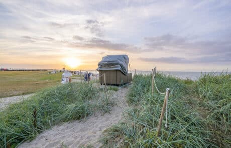 Nur wenige Gehminuten von der Wasserkante und dem UNESCO-Weltnaturerbe Wattenmeer entfernt kann man im Wangerland in einzigartigen Locations ganz besondere Nächte erleben. Von Mitte April bis Anfang Oktober genießt man Meeresrauschen, Nordseebrise und einen einzigartigen Ausblick in den strandnahen Unterkünften. Vom Schlafstrandkorb direkt an der Wasserkante über die NordseeKarren auf dem Deich bis hin zum nachhaltigen Green Tiny House bietet das Wangerland besondere Übernachtungsmöglichkeiten für eine unvergessliche Nordseeauszeit.