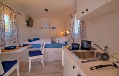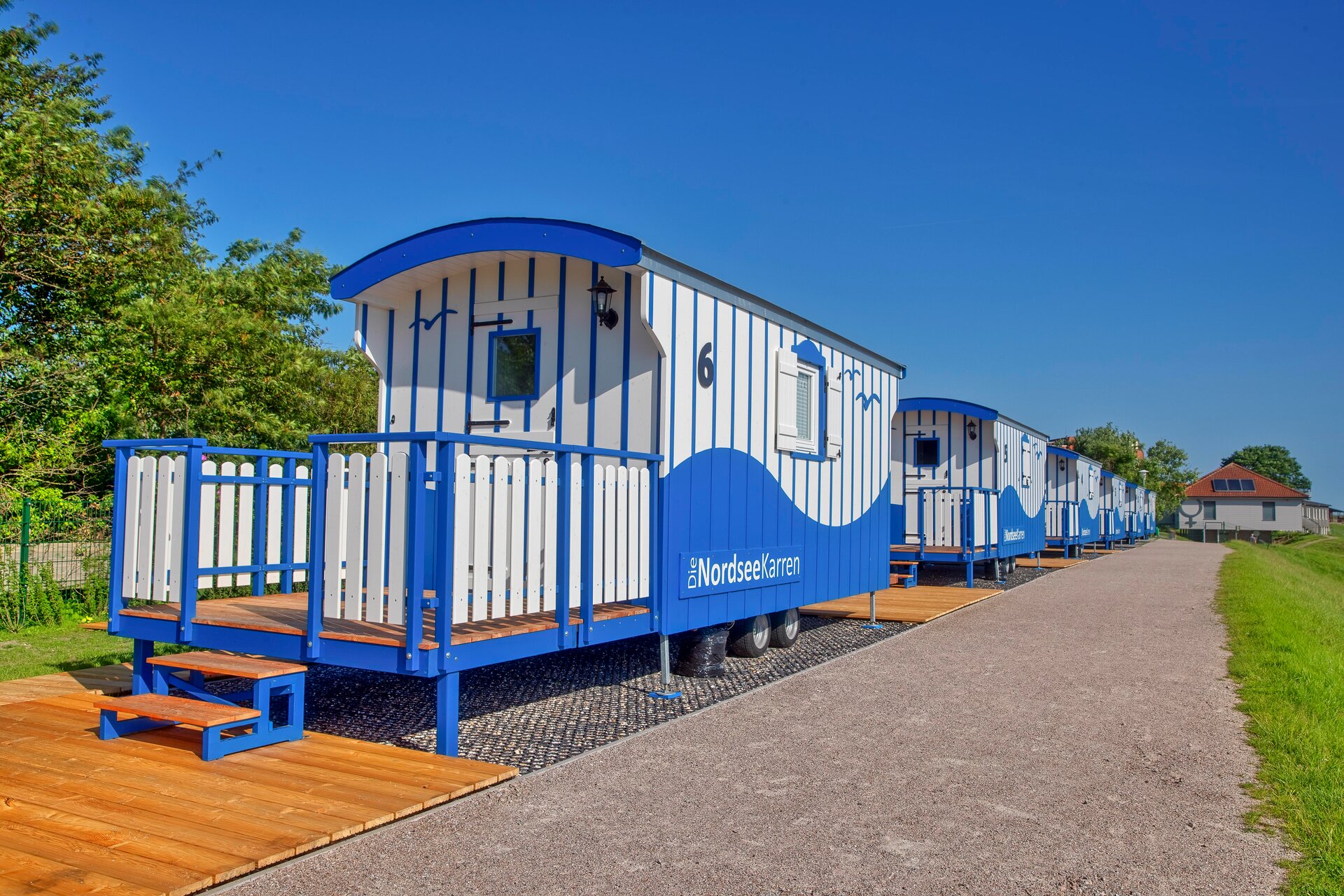 Von April bis Oktober laden die NordseeKarren im Wangerland zum besonderen Übernachtungserlebnis mit freiem Blick auf den Strand und die Nordsee. Die gemütlichen NordseeKarren aus Massivholz können für bis zu zwei Personen gebucht werden und sind typischen Schäferwagen nachempfunden, bieten jedoch deutlich mehr Komfort – unter anderem kann man sich hier auf ein bequemes Doppelbett, einen Kleiderschrank und ein Regal, eine kleine Küchenzeile mit Herd und einen Essplatz am Fenster freuen. Zudem findet sich in jeder NordseeKarre ein eigenes WC. Ein Highlight ist auch der eigene Strandkorb für lauschige Abende auf der Terrasse.