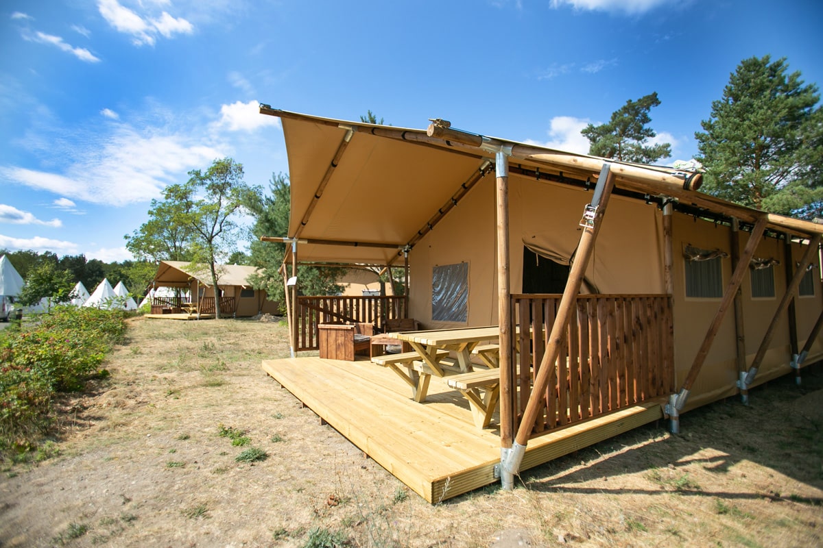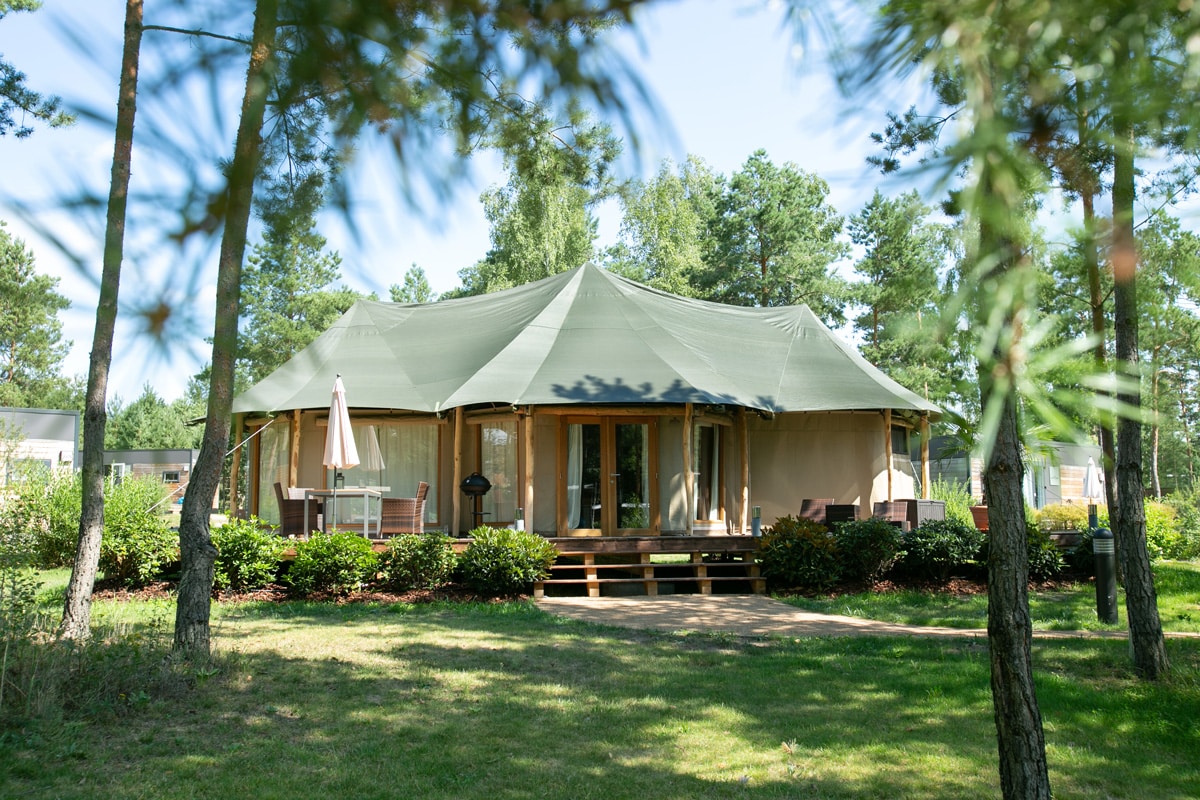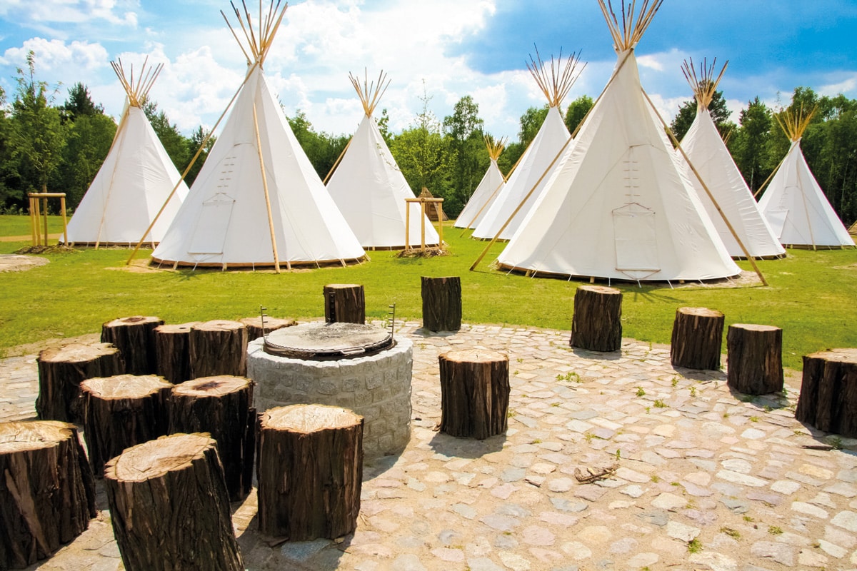 Campingplatz: Außerhalb der Halle steht ein großer Campingplatz mit Tipi-Zelten, Luxus-Zelten und Lodge-Zelten zur Verfügung. Auch Ferienhäuser gibt es hier. Die Luxus-Zelte im Kolonialstil verfügen über einen exklusiven Wohn- und einen separaten Schlafbereich mit Himmelbett, über ein Bad mit freistehender Wanne sowie eine großzügige Umlaufterrasse mit Sonnenliegen, Sitzgarnitur und Elektrogrill. Die Lodge-Zelte bieten durch ihre Möblierung und Einrichtung ein angenehm rustikales Übernachtungserlebnis.