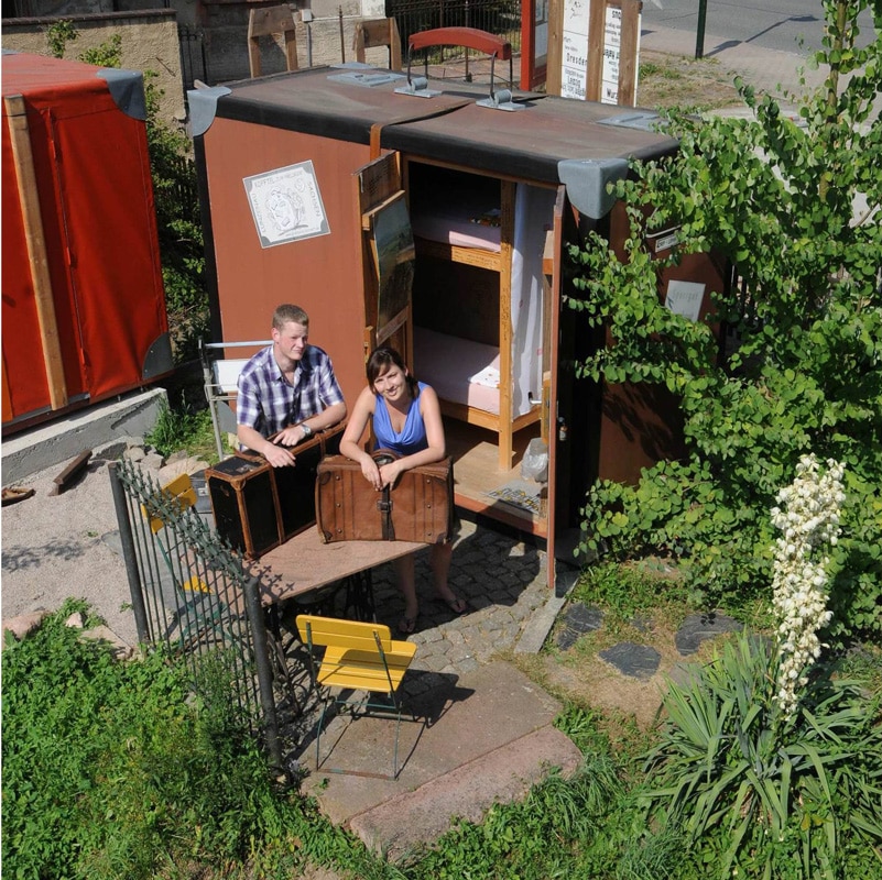 Wer unter Platzangst leidet, sollte von dieser speziellen Übernachtungsmöglichkeit etwas Abstand nehmen: im mittelsächsischen Lunzenau befindet sich das kleinste Hotel Deutschlands, das Kofferhotel „Kofftel“.