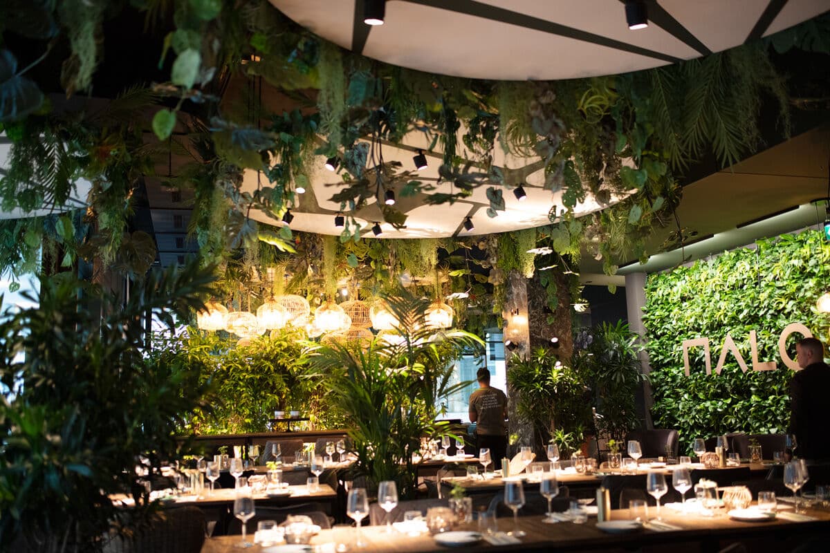 Nur wenige Schritte vom Rathaus entfernt, dort, wo sich einst die Rathausgarage befand, hat im Oktober 2021 das MALO eröffnet. Benannt ist die neue Location nach einer Insel im Korallenmeer am Rand des Südpazifiks – aber auch nach den Vornamen der beiden Inhaber, Matthias Grohe und sein Sohn Lorenz. Jede Menge von der Decke herabhängende Pflanzen und Mooswände sorgen für eine besondere Dschungelatmosphäre und lassen bei einem Besuch Urlaubsgefühle aufkommen. Die grün bewachsenen Wände werden automatisch bewässert, alles andere wird von Hand gegossen – dank Hydrokultur sind die Gießabstände jedoch so groß, dass man bei einem gemütlichen Essen sicher nicht von Mitarbeiter:innen mit Gießkanne unterbrochen wird. Ein Anlaufpunkt für Selfie-Liebhaber ist die „Influencer-Schaukel“ im neuen Restaurant: hier kann man sich selbst vor einer grünen Wand aus Blättern fotografieren.