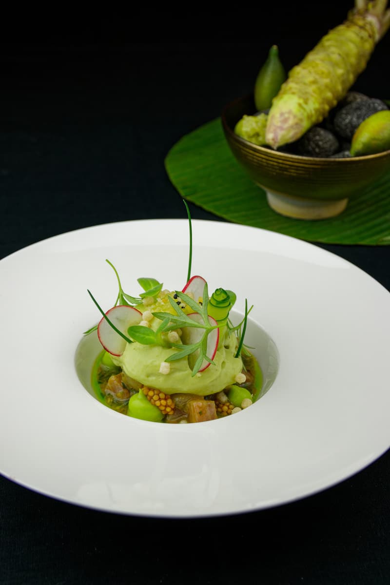 Die Zutaten für die geradlinige, produktbetonte Küche findet der Küchenchef praktisch vor der Tür: Auf insgesamt zwei Etagen werden im Erlebnis-Supermarkt Zurheide über 60.000 Produkte angeboten – darunter auch eine Auswahl von qualitativ-hochwertigen, regionalen und ausgewählten Feinkost-Produkten. Anton Pahl und sein Team kreieren aus diesem hochwertigen Angebot technisch filigrane, höchst delikate und präzise gearbeitete Gerichte wie z.B. „Kalbsbacke, Salbei-Sauce, Gremolata, Butterpüree und Kartoffel-Tempura“ oder „Label Rouge-Lachsfilet mit Kimchi-Blumenkohl püriert \ gepickelt \ gebraten“. Die Weinkarte offeriert eine umfangreiche Auswahl erlesener Tropfen, darunter auch seltene Champagner.