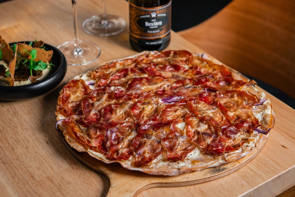 - Restaurant Der Weinlobbyist Berlin, Foodbild Elsässer Flammkuchen: © Der Weinlobbyist