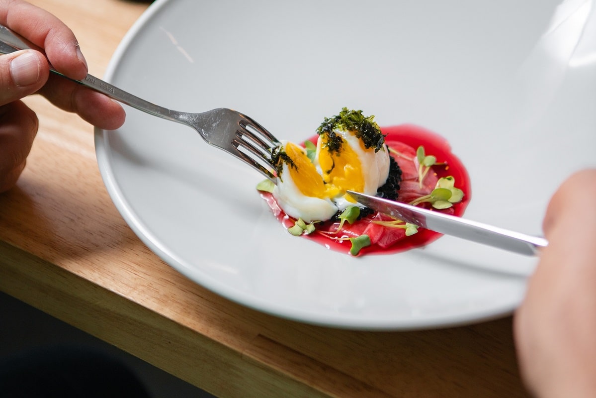 - Restaurant Der Weinlobbyist Berlin, Foodblid Onsenei mit Radieschen: © Der Weinlobbyist