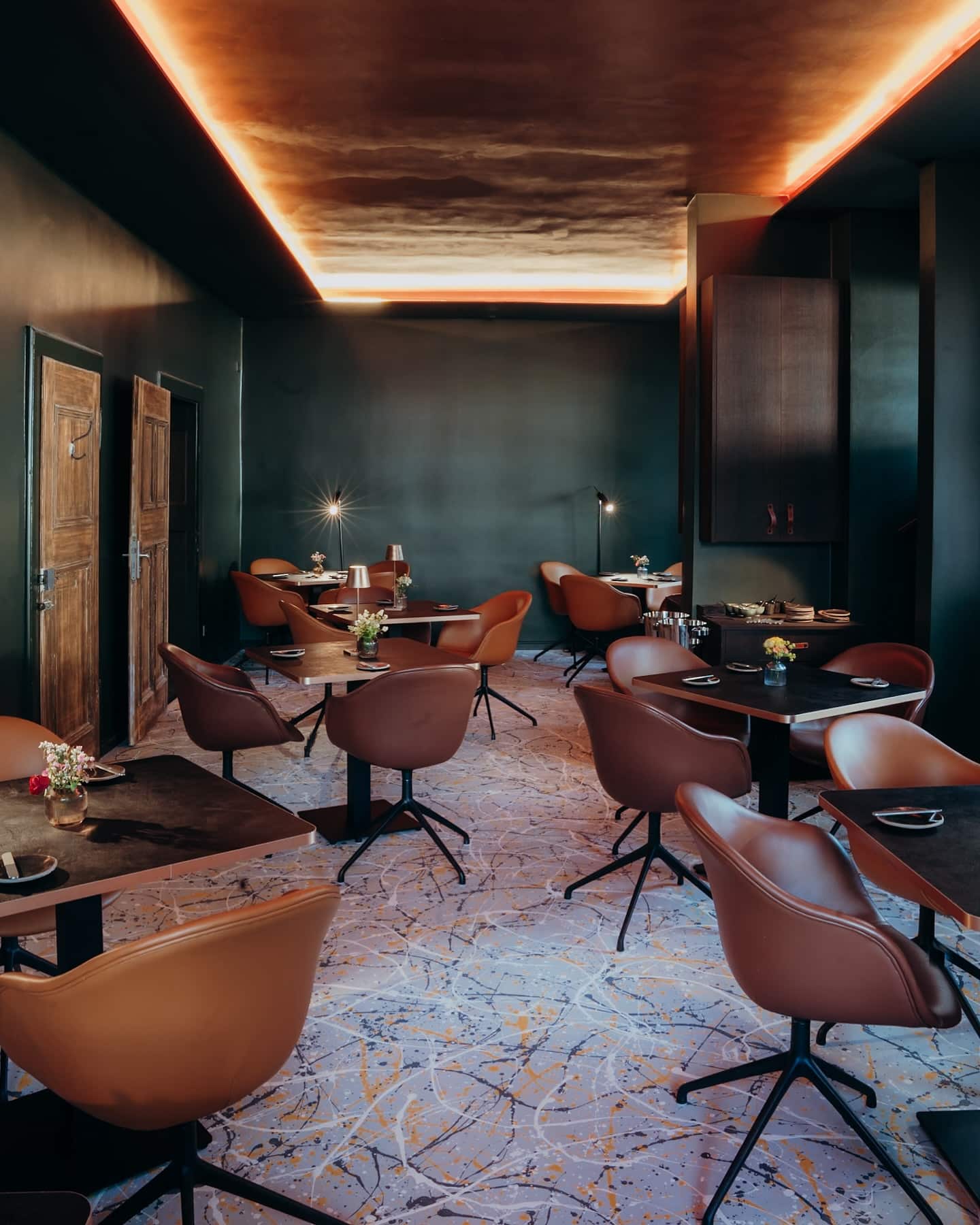Rauer Stein, vergitterte Fenster, modernes und einladendes Interieur – das macht das THE KNAST Restaurant in Berlin zu einem besonderen Fine-Dining-Restaurant hinter historischen Gittern. Neben einem Wine-and-Cheese-Angebot bereits ab 15 Uhr bietet das Restaurant ab 17 Uhr ein klares, modernes Fine Dining: aus verschiedenen Vorspeisen, Hauptgängen und Desserts kann man sich nach Lust und Laune ein 3- bis 5-gängiges Menü zusammenstellen – oder man verlässt sich auf den Küchenchef und bestellt ein 6-gängiges Menü mit Weinbegleitung. Eine À-la-carte-Bestellung ist ebenfalls möglich. Zur Wahl stehen beispielsweise „Schwarzwurzel. Walnuss. Pomelo. Zimt“ als Vorspeise, „Wildfang-Kabeljau. Rote Beete. Grünkohl. Pilz-Garum“ als Hauptgang und „Blaubeere. Veilchen. Mandel. Zitrone“ als süßer Abschluss. Der Fokus liegt auf saisonalen und regionalen Produkten, kombiniert mit internationalen Nuancen.