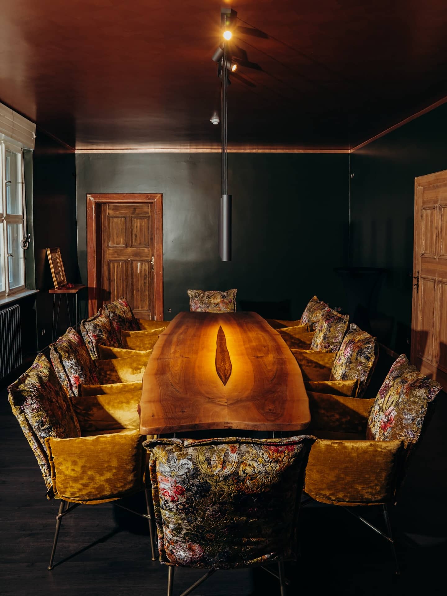 Innovative Cocktails, traditionelle Whisk(e)ys , sinnliche Absinth-Zeremonie und besondere alkoholfreie Cocktails bietet die Speakeasy-Bar in der ehemaligen Kapelle. Die THE KNAST Bar steht für Toleranz, Vielfalt und für einen Hauch Hedonismus und schlägt die Brücke zwischen altem Gemäuer und neuen Ideen. Hier gilt – wie übrigens im gesamten Gebäude – Adults only, und ein gepflegtes, elegantes, sinnliches, fantasievolles Outfit ist gewünscht, um zur Atmosphäre in der Bar beizutragen. Der Secret Table ist verborgen hinter schweren Türen, ausgestattet mit edlem Interior und voller kreativer Möglichkeiten – perfekt geeignet für ein vertrauliches Geschäftsessen oder ein Private Dining zum besonderen Anlass.