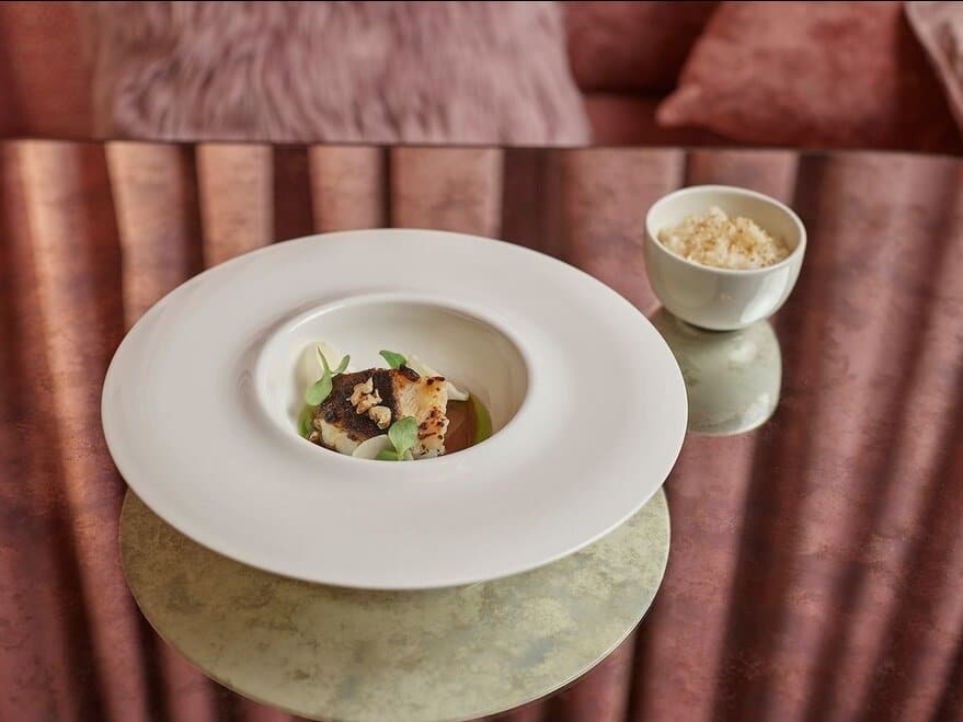 Mächtig geschmacksintensiv geht es im The Pink Room zu – die kreativen Fusionsgerichte kommen kräftig inszeniert daher, um mit dem grell-pinken Interieur des Restaurants mithalten zu können. Serviert wird ein Tasting Menu in acht Gängen, das man auf Wunsch auch verkürzen kann. Schmecken lassen kann man sich beispielsweise „Hamachi: Kumquat, Kokosnuss & Limettencreme“, „Thunfisch: Vanilleponzu, gepuffte Körner, Orange, Sumach, Blutampfer“, „Black Cod: Vin jaune, Topinambur, Walnüsse, Sushireis“ oder „Tamagoyaki: Tamagokuchen, getoastetes Reiseis, Reiskrispies & Yuzu“. Auch ein vegetarisches Menü wird es bald geben, und neben einer alkoholischen Getränkebegleitung (auch als Sake-Begleitung) gibt es auch eine alkoholfreie Variante. Das Essen ist so extravagant angerichtet, wie es das Restaurant verspricht – es blubbert, es raucht, es duftet, es leuchtet und bleibt garantiert in Erinnerung. Wer hierher kommt, sollte sich nicht nur auf einen glamourösen Abend gefasst machen, sondern sich auch dem Interiordesign des Restaurants entsprechend kleiden – Jeans und T-Shirt sind hier unerwünscht!