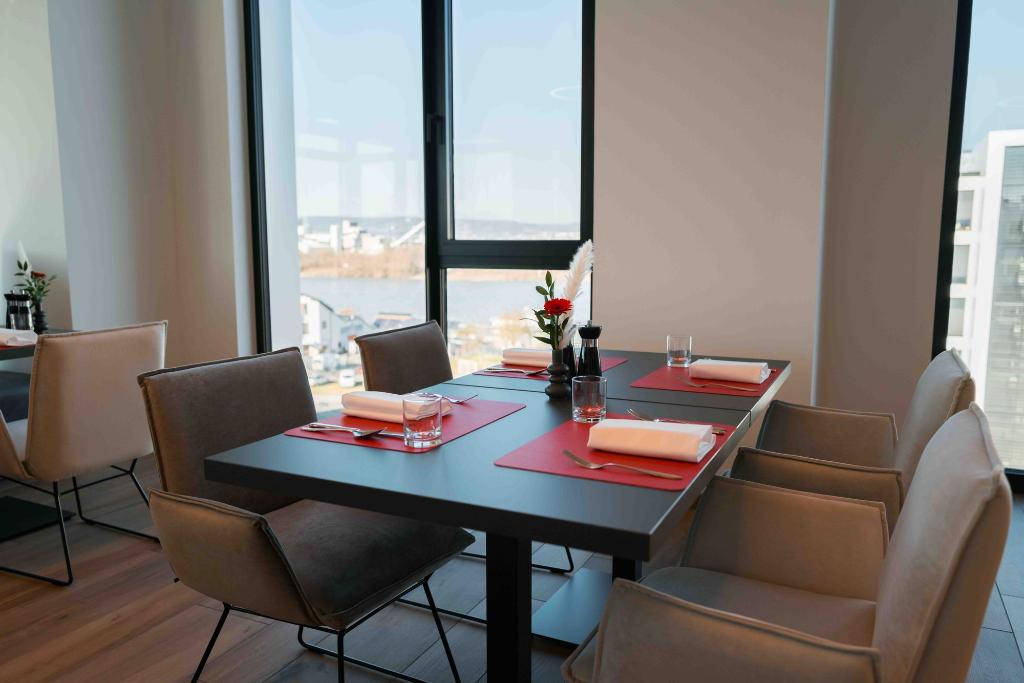 Unser Restaurant mit angegliederter Bar verfügt über 90 Sitzplätze und lädt zu kulinarischen Genüssen ein, während die Rooftop-Bar 60 Gästen mit ihrem uneingeschränkten Blick auf den Rhein ein unvergleichliches Ambiente bietet. Für Liebhaber von Zigarren hält unsere Zigarrenlounge 17 Sitzplätze bereit, um in entspannter Atmosphäre zu genießen.