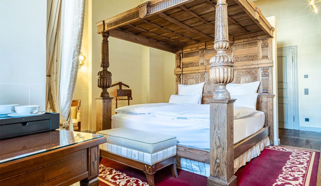 Schlafen wie ein Fürst. In diesen wunderschönen, alten Betten aus edlem, schottischem Holz, in diesen romantischen Suiten und Zimmern, mit diesen Möbeln, die Geschichte atmen. Morgens aufwachen, die Fenster öffnen – Natur sehen, riechen und hören. Das ist Luxus, der zu Ruhe kommen lässt.