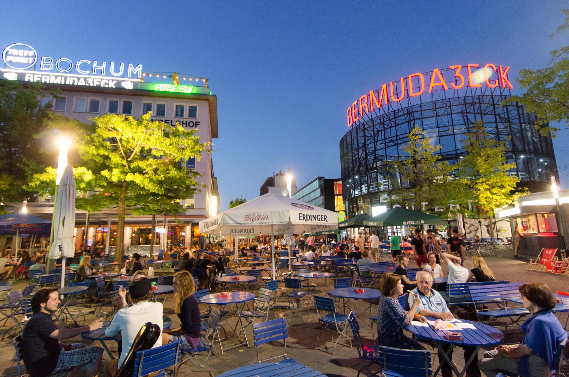 Deutsche Bergbau-Museum, eines der bedeutendsten Bergbaumuseen der Welt mit Anschauungsbergwerk sowie zwei Kunstmuseen. Bekannte Sehenswürdigkeiten in Bochum sind das Zeiss Planetarium, die Jahrhunderthalle für Veranstaltungen, das Zisterzienserkloster in Bochum-Stiepel sowie die Bergarbeitersiedlung Dahlhauser Heide. Das Bermuda3eck ist mit 60 gastronomischen Betrieben das wichtigste Kneipenzentrum des Ruhrgebiets.