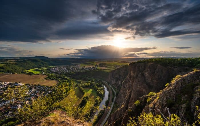 Saarland. Die Stadt wurde 1974 aus dem Zusammenschluss von 13 zuvor eigenständigen Gemeinden neu gebildet. Nohfelden gehört zum Naturpark Saar-Hunsrück. Im Ortsteil Selbach entspringt die Nahe. Bedeutende Sehenswürdigkeiten in Nohfelden sind die Burg Nohfelden, die evangelische Pfarrkirche Wolfersweiler, der Nohfelder Kräutergarten, der Englische Garten in Gonnesweiler, die Nahequelle mit Wildfreigehege sowie das Museum für Mode und Tracht. Als Naherholungsgebiet dient das Freizeitzentrum Bostalsee mit Wanderwegen und Möglichkeiten zum Angeln, Schwimmen, Rudern, Tauchen und Tretboot fahren. Der Freizeitpark Neunkirchen/Nahe bietet einen Aussichtsturm, eine Minigolfanlage und eine große Spielfläche für Kinder und Familien. Nohfelden liegt am Nahe-Radweg und am
