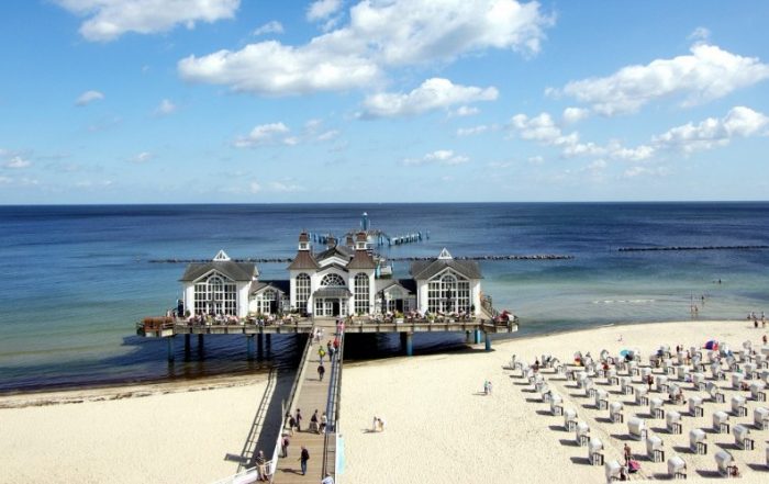 Insel Rügen und liegt auf der Ostseite der Insel zwischen Prorer Wiek und Schmachter See. Bekannt ist Binz für seinen breiten Sandstrand und die vielen hübschen Bauten im Stil der Bäderarchitektur, das auch „Nizza des Ostens“ genannt wird. Erstmals erwähnt wurde Binz im Jahr 1318, Ende des 19. Jahrhunderts entwickelte sich der Fremdenverkehr, zwischen 1890 und 1910 entstanden die berühmten Bauten der Bäderarchitektur. Bedeutende Bauwerke in Binz sind die Seebrücke von 1994, das Jagdschloss Granitz von 1846, das Kurhaus Binz von 1908, die neugotische evangelische Dorfkirche Binz von 1913 sowie die ehemalige KdF- und spätere Kasernenanlage Prora, längstes Gebäude der Welt. Weitere Sehenswürdigkeiten in Binz sind die Strandpromenade, der Kurpark sowie das Museum Ostseebad Binz. Die sogenannte Binzer Bäderbahn erschließt als Ringlinie den Ort.