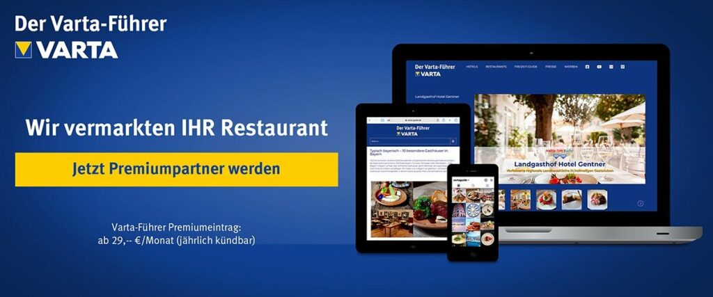 Unsere Plattform zählt zu den stärksten deutschen Portalen im Hotel- und Restaurantumfeld. Die Inhalte unserer Website, unseres Newsletters sowie in den sozialen Netzwerken des Varta-Führers sehen monatlich mehr als 250.000 User.