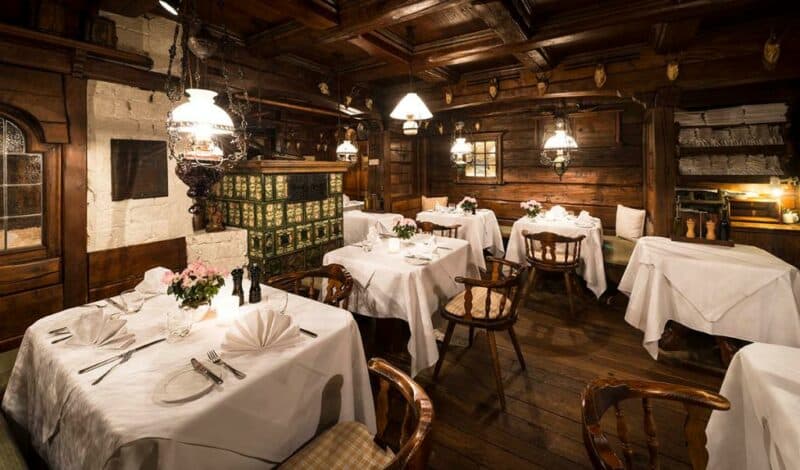 Wie der Name, so die behagliche Kaminstube. Ein toller Kaminofen und alte Gemälde sorgen für den besonderen Wohlfühlfaktor. Das Restaurant offeriert regional-zeitgemäße und internationale Kulinarik vom Feinsten.Tipp: Auf der Terrasse verzaubert der Blick ins Ellbachtal.