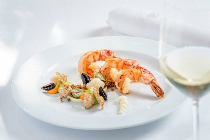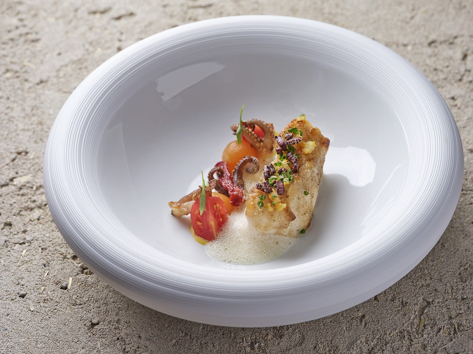 Die modern-puristische Einrichtung bietet den perfekten Rahmen für eine kreative Küche, die mediterrane Leichtigkeit mit kraftvollen Aromen vereint. Gäste können zwischen einem innovativen Gourmetmenü mit bis zu neun Gängen und einem traditionellen Menü mit italienischen Klassikern wählen.